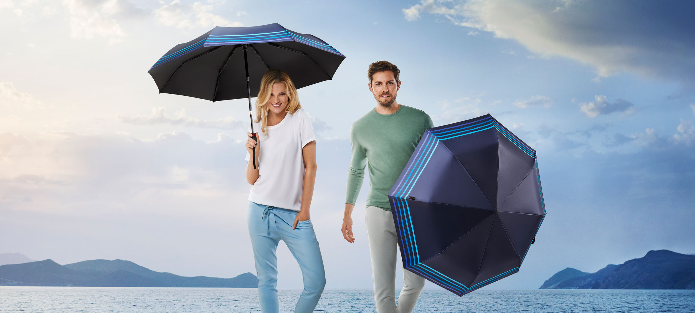 突然の雨。照りつける日差し。クニルプスの高性能な雨傘機能を保ちながら、日傘としても活躍する新感覚の折りたたみ傘です。どんなときも快適に過ごせたなら、という発想から生まれたコレクションです。