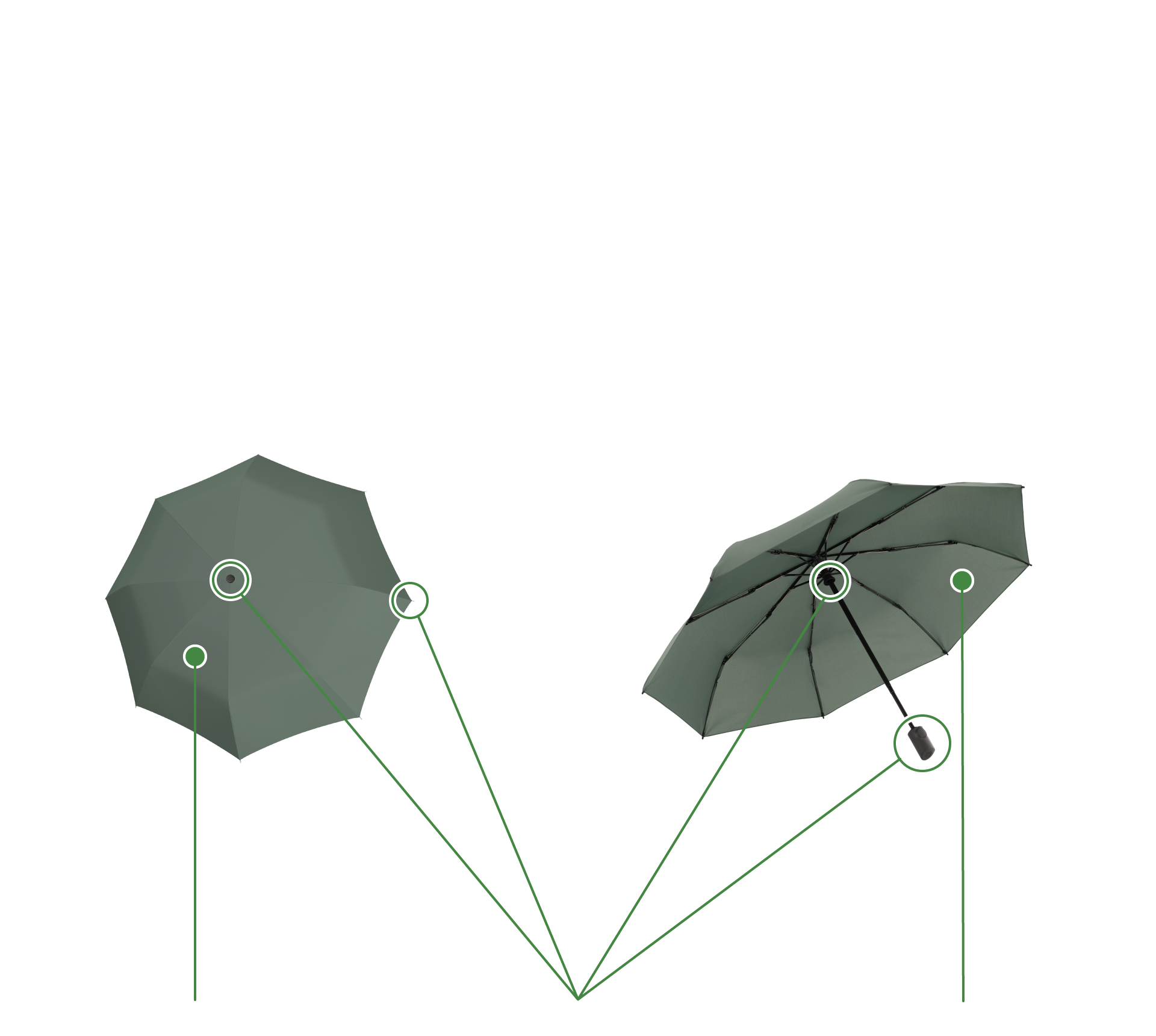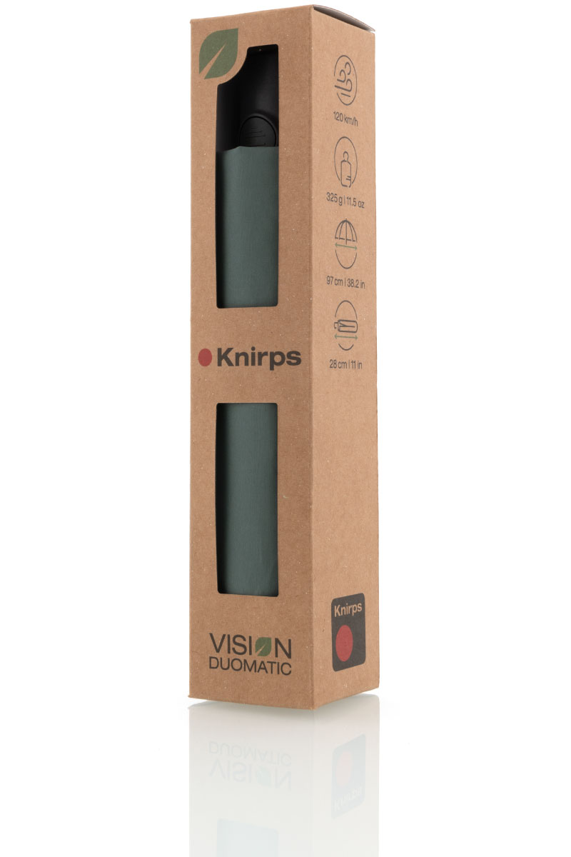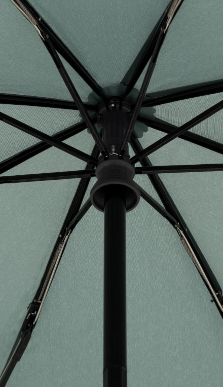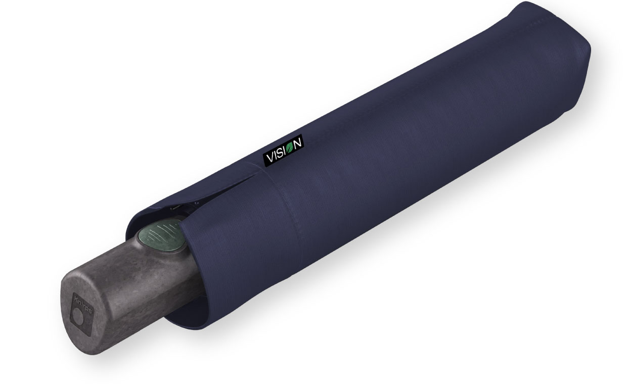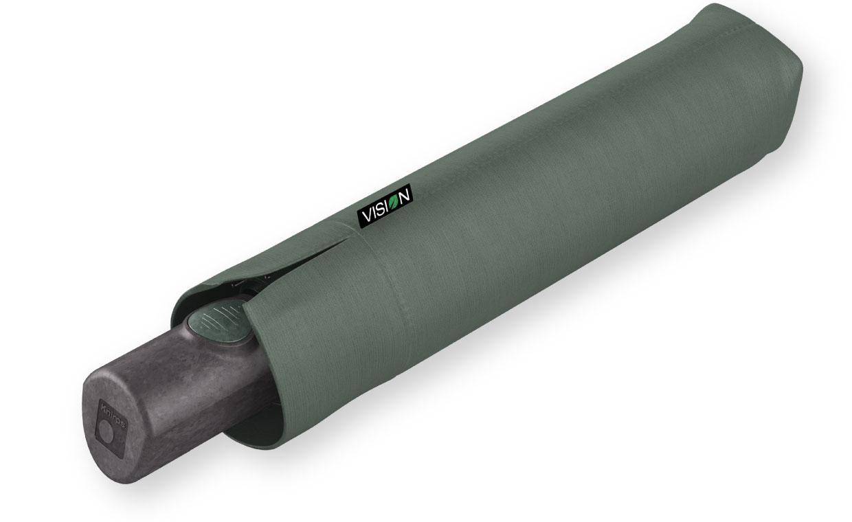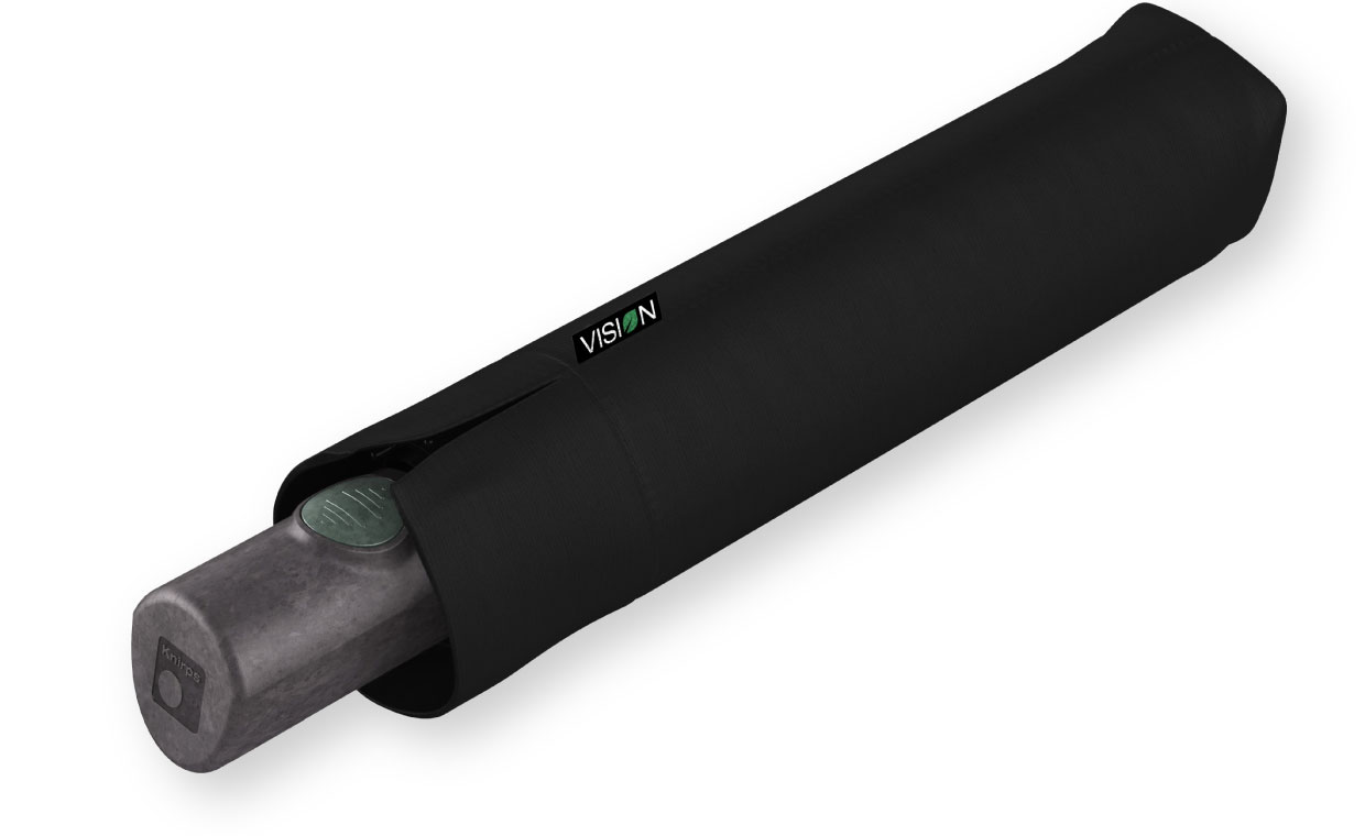 自然と共生する傘。クニルプスはこの理想をめざし、環境に優しい折りたたみ傘を開発しました。新しい折りたたみ傘の名前はVISION(ビジョン)。VISION は環境を保護する最先端の材料を使用しています。ハンドル(持ち手)、石突などのプラスチックパーツは、生分解可能なプラスチックで作られています。傘生地には、ペットボトルリサイクル生地を使用し、PFC フリーの撥水防汚コーティング ecorepel® を施しています。環境保護と高い品質の証として、他のクニルプスの傘と同じく、5年保証を実施しています。VISION から自然と傘が共生する未来がはじまります。